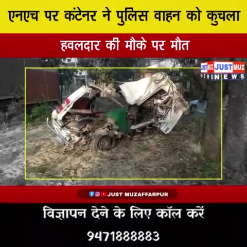 एनएच पर कंटेनर ने पुलिस वाहन को कुचला, हवलदार की मौक़े पर मौत
