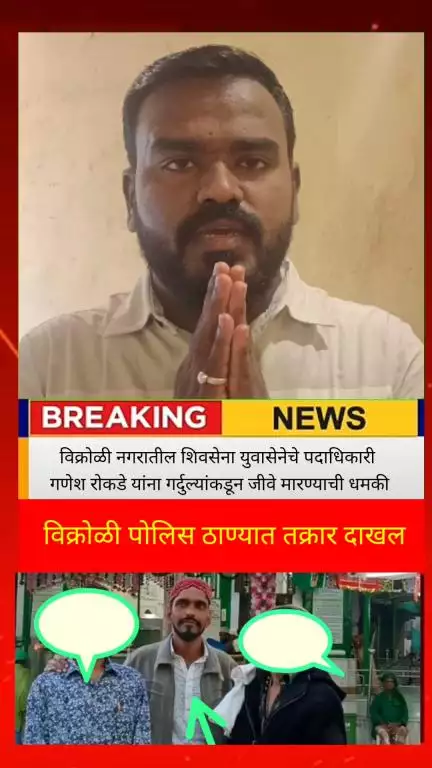विक्रोळी नगरातील शिवसेना युवासेनेचे पदाधिकारी गणेश रोकडे यांना गर्दुल्यांकडून जीवे मारण्याची धमकी या प्रकरणी आज मंगळवार दिनांक ०७ ऑक्टोबर रोजी दुपारी १२ वाजता विक्रोळी पोलिस ठाण्यात गणेश रोकडे यांनी तक्रार दाखल केली आहे
