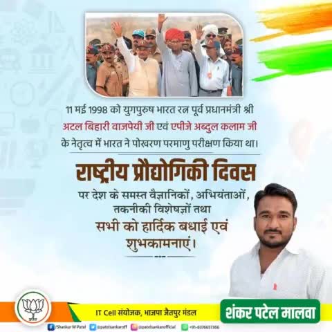 राष्ट्रीय प्रौद्योगिकी दिवस पर हार्दिक बधाई और सभी देशवासियों को शुभकामनाएं!