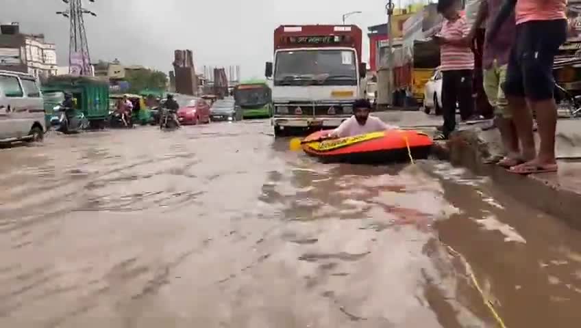 उरई: Welcome to Delhi, enjoy boating on Delhi street Thanks Kejriwal
