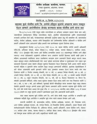 महात्मा फुले पोलीस ठाणे हद्दीतून दोन मुलांचे अपहरण करून घेऊन जाणाऱ्या आरोपींना कासा पोलिसांकडून अटक करण्यात यश.
