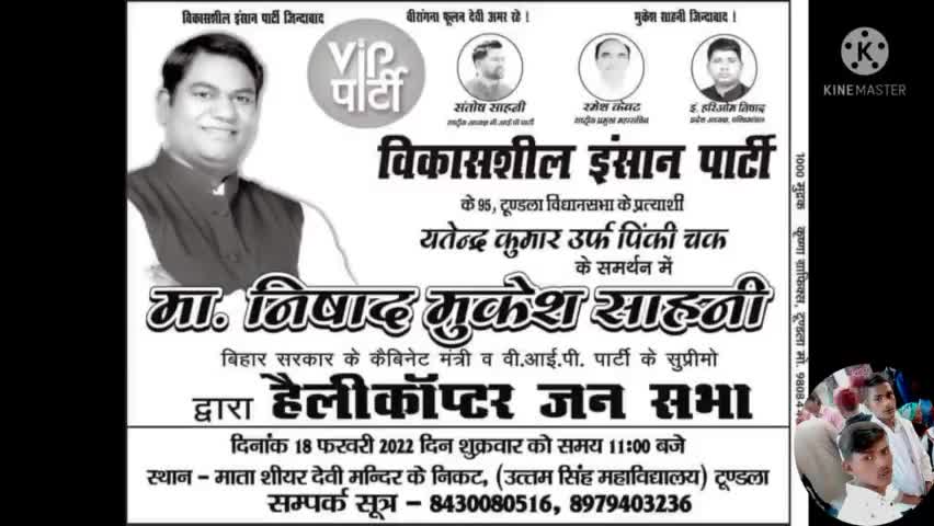 बिहार सरकार के कैबिनेट मंत्री श्री मुकेश साहनी नगला सिंघी माता सीयर देवी जनसभा को संबोधित करेंगे 18 फरवरी