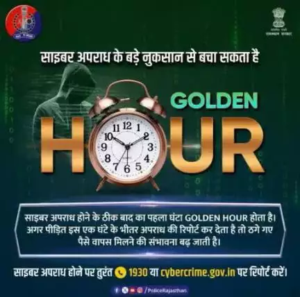 साइबर अपराध को रोकने के लिए आपकी समझदारी व सतर्कता महत्वपूर्ण है। अपराध होने के ठीक बाद का पहला घंटा GOLDEN HOUR होता जिसमें अगर पीड़ित अपराध की रिपोर्ट कर दे तो ठगे गए पैसे वापस मिलने की संभावना काफी बढ़ जाती है।