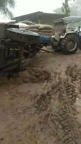 कर्वी: गौहानी कला में आज रात गम्भीर बारिश व रोड ख़राब होने से सरकारी खाद्यान्न से भरी ट्राली पलटी ।