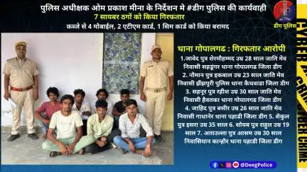 थाना गोपालगढ द्वारा कुल 7 सायबर ठग गिरफतार , 4 मोबाईल, 2 एटीएम कार्ड, 1 सिम कार्ड बरामद