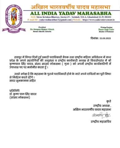 #लोकप्रिय_सांसद_डॉ_केपी_यादव_जी को अखिल भारतवर्षीय यादव महासभा'' में 'राष्ट्रीय- उपाध्यक्ष' के दायित्व मिलने पर हार्दिक बधाई एबं शुभकामनाएं।💐💐