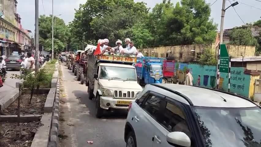 सलूम्बर: सलूम्बर में निकाली गई किसान गर्जना रैली, सभा स्थल पर 2 घंटे तक बरसात में कुर्सी ओढ़कर डटे रहे किसान