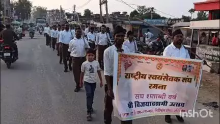 रमना में राष्ट्रीय स्वयंसेवक संघ ने विजयादशमी एवं स्थापना दिवस के शताब्दी वर्ष पर बुधवार की दोपहर करीब 12बजे पथ संचलन निकाला। ‘देश के लिए जिए, समाज के लिए जिए’ का उद्घोष करते हुए यह पथ संचलन राजकीय मध्य विद्यालय सिलिदाग से प्रारंभ होकर रमना बाजार और गुलरही बांध होते हुए वापस विद्यालय पहुँचा। इस दौरान ग्रामीणों ने पुष्प वर्षा और दीपक आरती से स्वागत किया। इस द