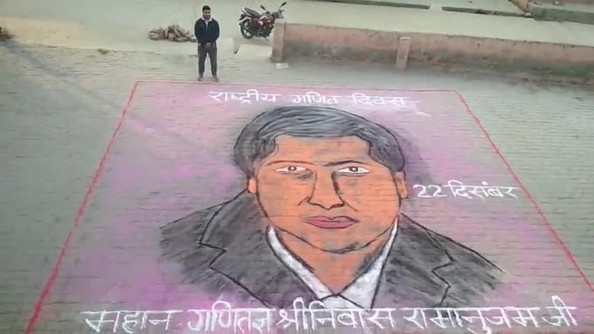 #राष्ट्रीयगणितदिवस पर गाँव #Bhadana #Jhajjar #Haryana की चौपाल से बेटी अंशुल शर्मा व उनके पिता मुकेश शर्मा का एक रंगोली