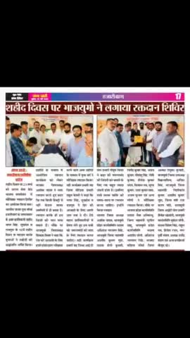 शहीद दिवस पर शहीदों के सम्मान में भारतीय जनता युवा मोर्चा का एकदिवसीय रक्तदान शिविर। 🚩जय श्री राम।🚩