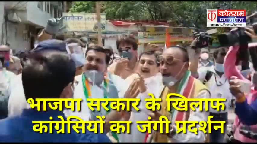 इंदौर: भाजपा सरकार के खिलाफ कांग्रेसियों ने किया जंगी प्रदर्शन।