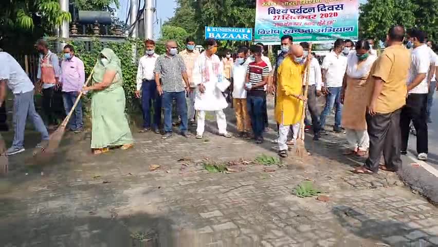 कुशीनगर में #विश्व_पर्यटन_दिवस के अवसर पर नगर पालिका कसया कुशीनगर के तत्वावधान में आयोजित सफाई अभियान कार्यक्रम में