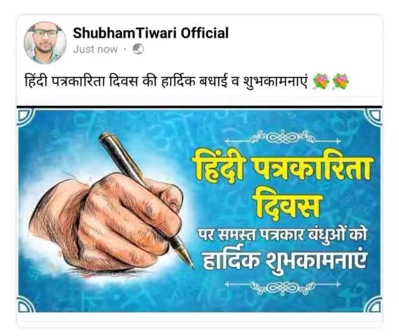 बलरामपुर:- सभी पत्रकार बंधुओं को हिंदी पत्रकारिता दिवस की हार्दिक बधाई व शुभकामनाएं #शुभम_तिवारी_पत्रकार_पब्लिक_न्यूज़