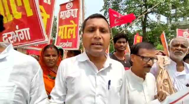 मंहगाई,बेरोजगारी,राशनकार्ड कटौती व बुल्डोजर राज के खिलाफ दरभंगा समाहरणालय पर प्रदर्शन में माले के अभिषेक कुमार बात रखते