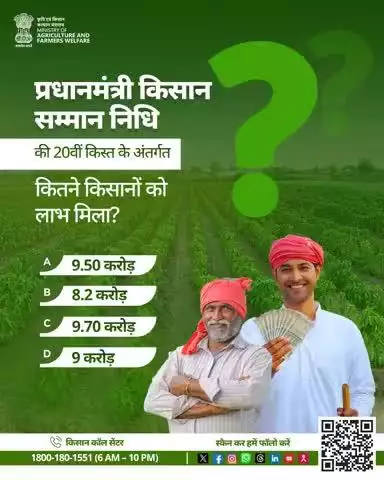 प्रधानमंत्री किसान सम्मान निधि की 20वीं किस्त के अंतर्गत कितने किसानों को लाभ मिला? #PMKisan #AgriGoi #AgriQuiz