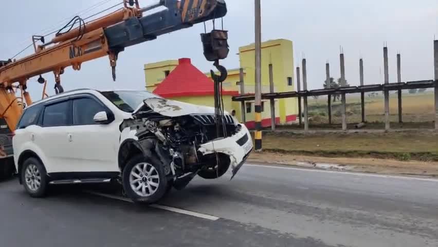 हलसी: कैंदी में एक्सयूवी और स्कूल वैन की टक्कर के बाद दोनों वाहन बुरी तरह से हुए क्षतिग्रस्त, कोई हताहत नहीं