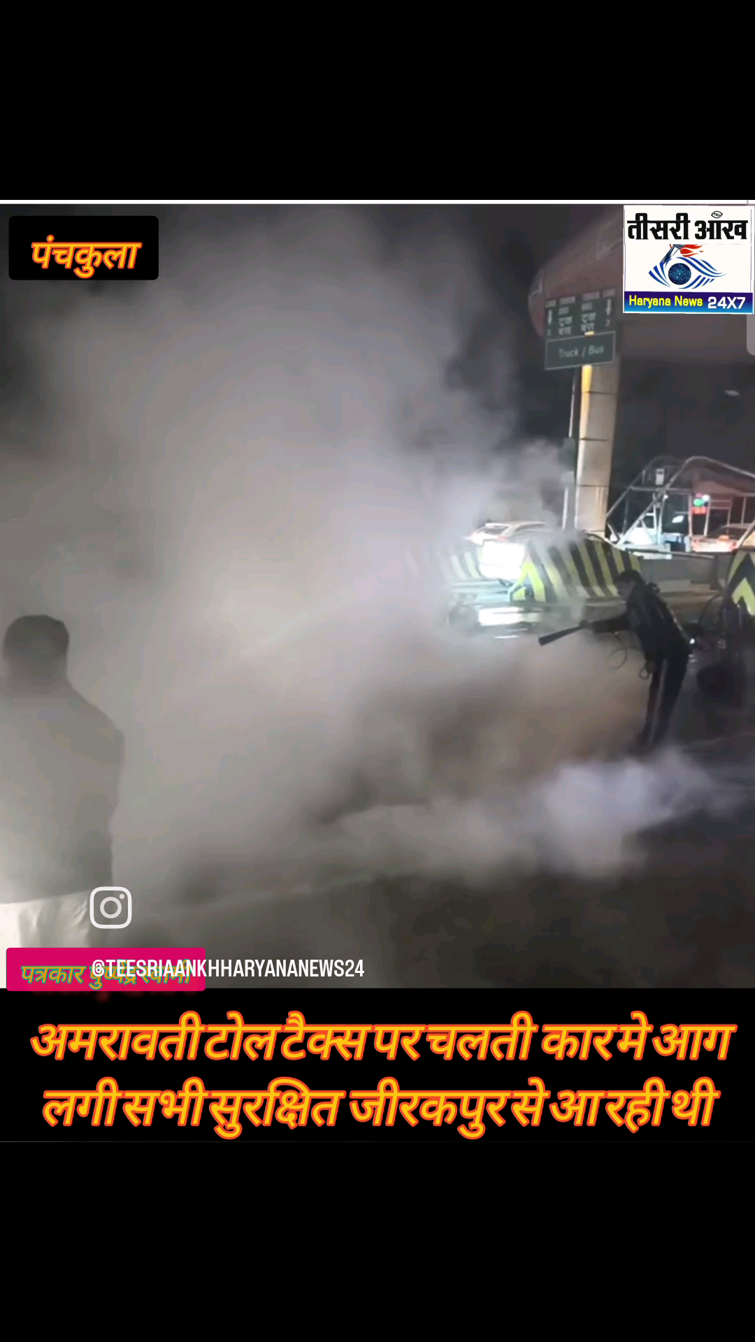 चंडी मंदिर अमरावती टोल टैक्स पर लगी चलती कार में आग सभी सुरक्षित