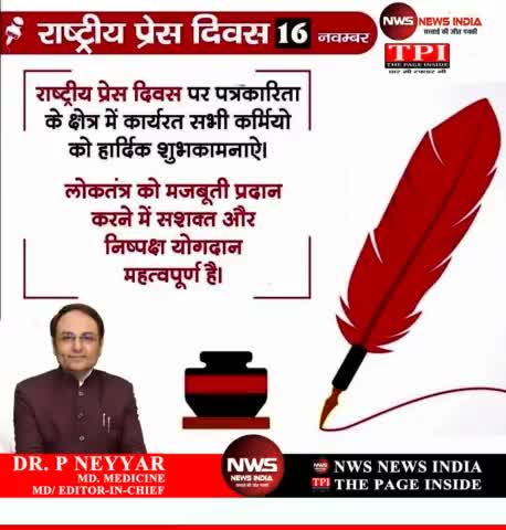 #राष्ट्रीय_प्रेस_दिवस पर लोकतंत्र के चौथे स्तंभ तथा देस के विकास में अहम भूमिका निभा रहे सभी पत्रकारों को राष्ट्रीय प्रेस दिवस की हार्दिक बधाई एवं शुभकामनाएं। 💐