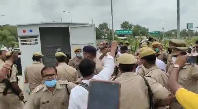 ज्ञानपुर पेशी के दौरान बिधायक विजय मिश्रा
