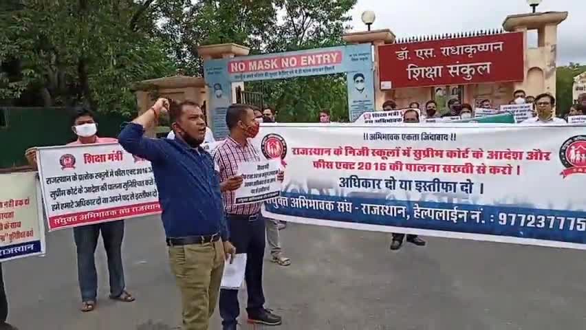 जयपुर: शिक्षा संकुल पर अभिभावक संघ का धरना प्रदर्शन, संघ प्रदेश अध्यक्ष अरविंद अग्रवाल बोले- फीस एक्ट की नहीं हो रही पालना