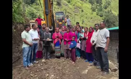 रुद्रप्रयाग: केदारघाटी के सीमांत तोंषी गांव तक पहुंची सड़क, ग्रामीणों ने जेसीबी मशीन के पहुंचने पर किया स्वागत