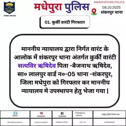शंकरपुर थाना अंतर्गत 01.कुर्की वारंटी को मधेपुरा पुलिस ने किया गिरफ्तार।अग्रिम करवाई की जा रही है | @bihar_police