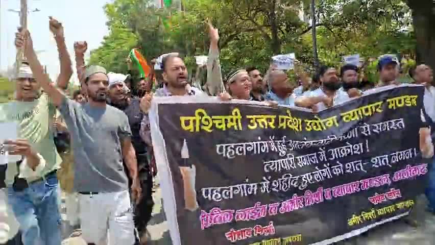 अलीगढ़: सिविल लाइन व अमीर निशां के व्यापारियों द्वारा पहलगाम में हुई आतंकवादी घटना के विरोध में निकाली गई संयुक्त रैली।
