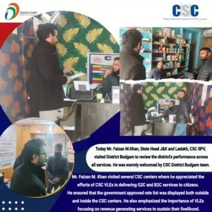 Mr. Faizan M. Khan, State Head J&K & Ladakh, CSC SPV, visited ASK Budgam & CSC centers, applauding Aadhar operators & CSC VLEs efforts. Ensured govt approved charges are displayed prominently.
