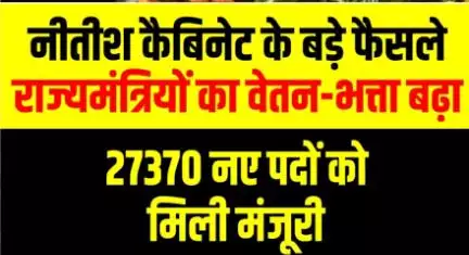 मंगलवार को हुए नीतीश कैबिनेट की बैठक के बड़े फैसले, राज्यमंत्रियों और उपमंत्रियों का वेतन-भत्ता बढ़ा, 27370 नए पदों को मंजूरी, 10 पंचायतों पर एक सहायक शिक्षा विकास अधिकारी की भर्ती होगी #NitishKumar #CabinetMeeting #SSiddharth