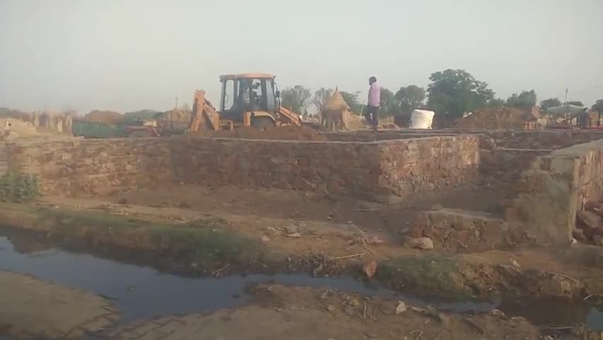 बरोलीरान जाटव मोहल्ला में j.c.b मकान का भर्त करती हुई