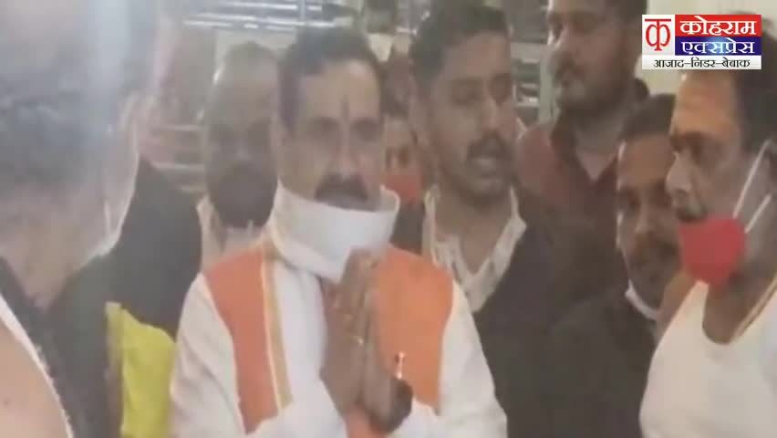 इंदौर: गृह मंत्री ने किए बाबा महाकाल के दर्शन, महाकाल मंदिर में हुई जमकर धक्का-मुक्की शोशल डिस्टेंस भूले कार्यकर्ता।