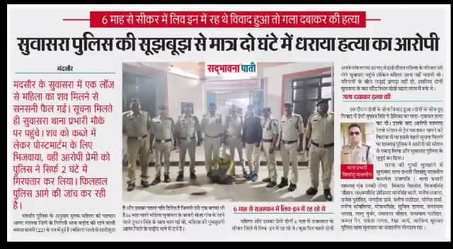 सुवासरा पुलिस की सूझबूझ से मात्र दो घंटे में धराया हत्या का आरोपी - 6 माह से सीकर में लिव इन में रह थे #mandsaur #mpnews