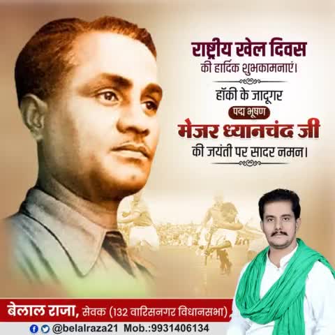 हॉकी के जादूगर नाम से मशहूर मेजर ध्यानचंद जी की जयंती पर शत्-शत् नमन..