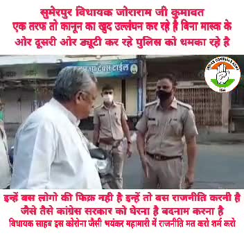 सुमेरपुर विधायक जोराराम जी कुमावत दादागिरी करते हुए , पुलिस को अपना राजनीति पावर बताते हुए