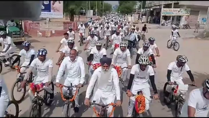 कालांवाली: *साइक्लोथान यात्रा - तीसरा दिन* साइक्लोथान यात्रा के *कालांवाली* पहुंचने पर पूर्व विधायक बलकौर सिंह, सागर केहरवाला, हरप