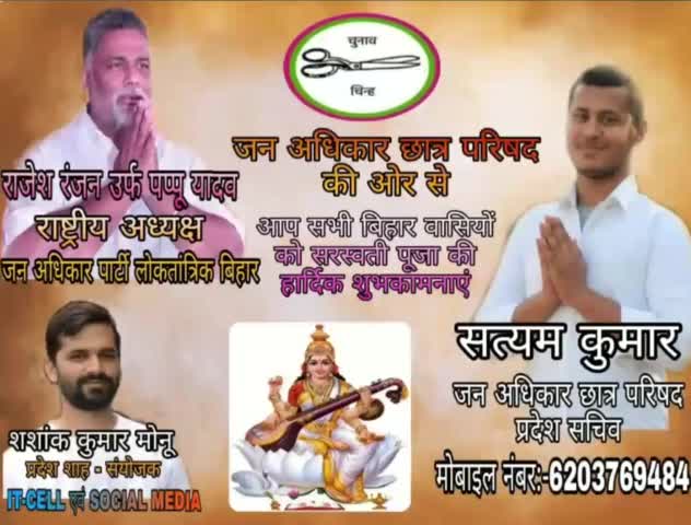 👉🏻जन अधिकार छात्र परिषद की ओर से आप सभी बिहार वासियों को सरस्वती पूजा की हार्दिक शुभकामनाएं🙏🏻🙏🏻 @satyamsingh5211