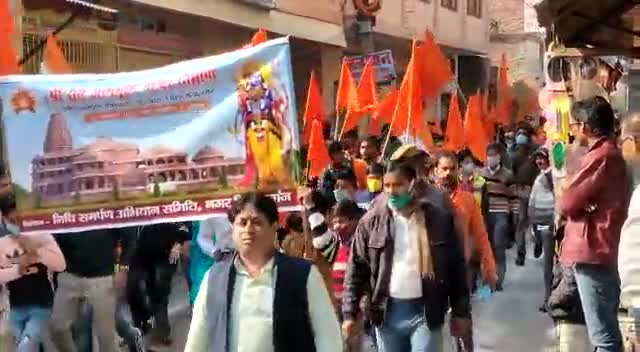 नगर में प्रभु श्री राम के भक्तों के साथ भव्य रैली निकाली गयी। जिसमें पूरा नगर श्री राम के जयकारों से राममय हो गया