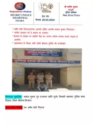 #KhairthalPolice # PS खैरथल • थाना खैरथल पुलिस टीम की अवैध हथियारों के विरुद्ध प्रभावी कार्यवाही।