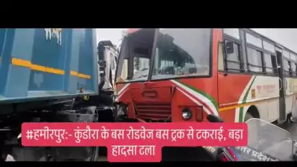 #हमीरपुर:- कुंडौरा के बस रोडवेज बस ट्रक से टकराई, बड़ा हादसा टला
