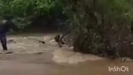 शिरुर अनंतपाळ: मांजरा नदीला पूर उजेड येथे व्यक्तीला ग्रामस्थांनी दोरीच्या साह्याने पुरात वाहून जाताना वाचवले