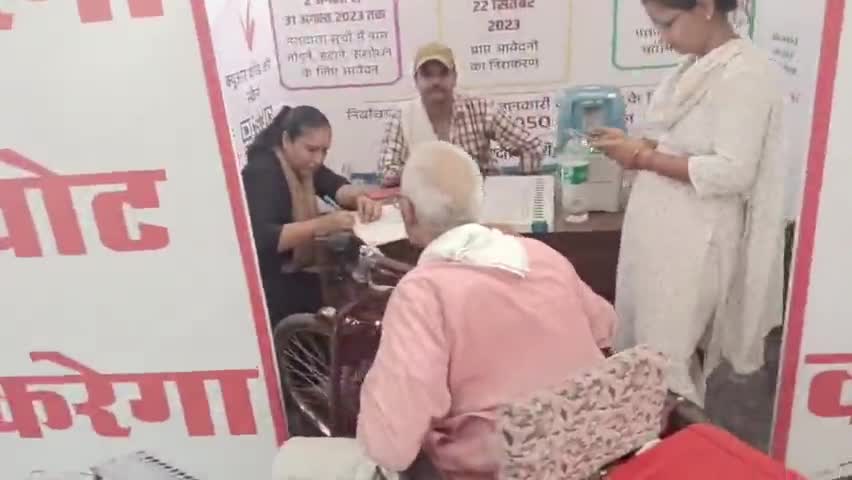 मुरैना नगर: लोगों को जागरूक करने के लिए जिला कलेक्ट्रेट में लगाया गया EVM स्टॉल, दी जा रही वोट डालने की जानकारी