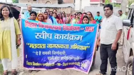 गुरुवार दोपहर 1:00 बजे बिहार विधानसभा निर्वाचन 2025 को लेकर स्वीप कार्यक्रम के तहत मतदाता जागरूकता अभियान चलाया गया जिसमें बड़ी संख्या में जीविका दीदियों ने भाग लिया जहां मौके पर मतदान को लेकर शपथ भी दिलाई गई वही बताते चले कि बिहार विधानसभा चुनाव को लेकर मतदाताओं के बीच मतदाता जागरूकता अभियान चलाया जा रहा है