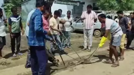 सीधी जिले के मड़वास थाना अंतर्गत पर बकवा गांव में गुप्ता परिवार के घर में घुसी पहर चिट्ठी मचा हड़कंप वन विभाग मझौली को दी गई जानकारी जहां मझौली रेंजर निलेश द्विवेदी ने दलबल के साथ आज सुबह रविवार को 10:बजे पहर चिट्ठी का रेस्क्यू कर जंगल में छोड़ा गया