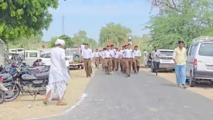 शिव विधानसभा क्षेत्र के ऊपरला गांव में गुरुवार सुबह राष्ट्रीय स्वयंसेवक संघ के शताब्दी वर्ष एवं विजयदशमी के उपलक्ष पर आगौर मंडल के आसपास तमाम गांव का पथ संचलन निकाला। इस पथ संचलन में सैकड़ो लोगों ने भाग लिया। वही कदम से कदम मिलाकर पूरे गांव की गली मोहाली में संचलन को घुमाया गया संचलन का कई स्थानों पर स्वागत भी हुआ।