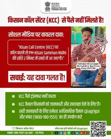 किसान कॉल सेंटर कभी पैसा नहीं मांगता, सिर्फ जानकारी व मदद देता है। आधिकारिक नंबर: 1800-180-1551 #KisanCallCenter