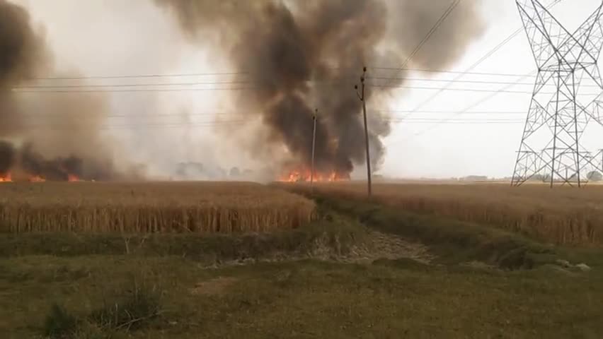 औरैया: अधासी भर्रापुर के बीच सैकड़ों बीघा गेहूं की फसल जलकर खाक