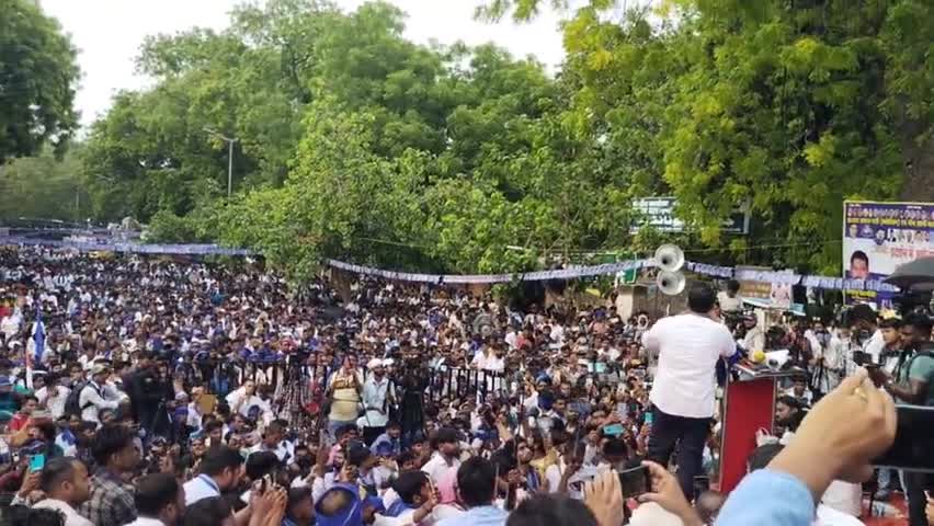 दिल्ली : जंतर मंतर महाआंदोलन को संबोधित करते भीम आर्मी प्रमुख चन्द्रशेखर आजाद जंतर मंतर पर उमड़ा जनसैलाब