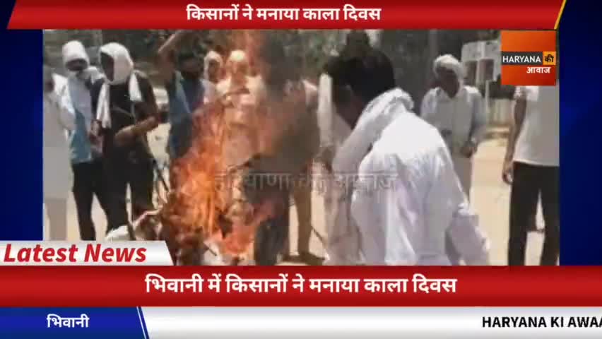 भिवानी: कृषि कानूनों के खिलाफ आंदोलन को 6 महीने पूरे होने पर किसानों ने मनाया काला दिवस किसानों ने फूंका सरकार का पुतला
