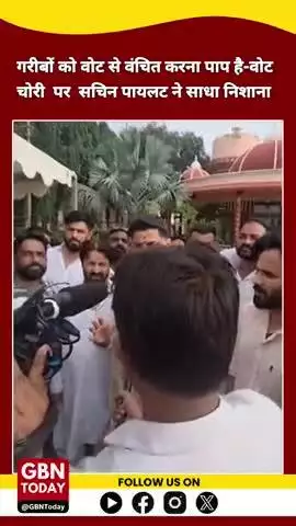 सचिन पायलट ने वोट चोरी पर जताई गहरी चिंता। बोले – "राहुल गांधी ने सबूतों के साथ दुनिया को दिखाया सच, लेकिन चुनाव आयोग अब तक चुप है। करोड़ों गरीबों को वोट से वंचित रखना संविधान और लोकतंत्र के खिलाफ सबसे बड़ा पाप है।" #SachinPilot #VoteChori #gbntoday #ElectionCommission #VotingRights #DemocracyInDanger #RahulGandhi #IndianDemocracy #ConstitutionalRights #VoterSuppression #लोकतंत्र_पर_हमला #वोट_का_अधिकार #चुनावआयोग #सचिनपायलट