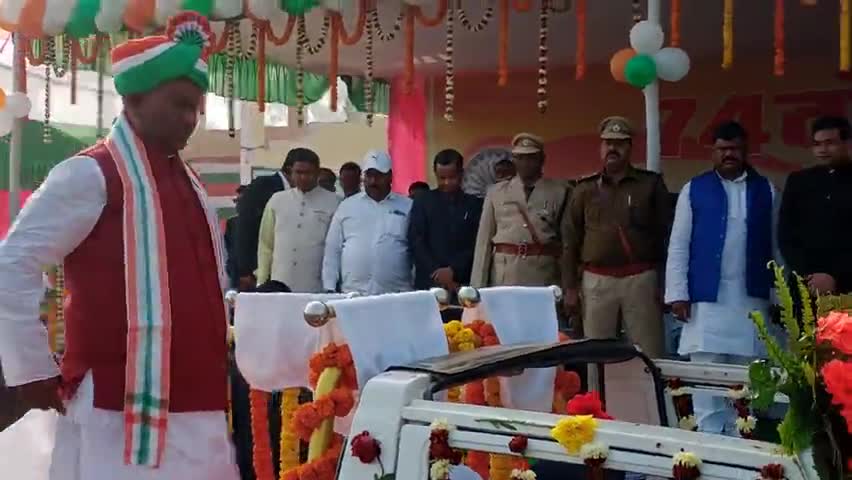 चतरा: जवाहरलाल नेहरू स्टेडियम चतरा में गणतंत्र दिवस मनाए गए प्रेड निरीक्षण करते हुए मा. श्री सत्यानंद भोक्ता और DC सर